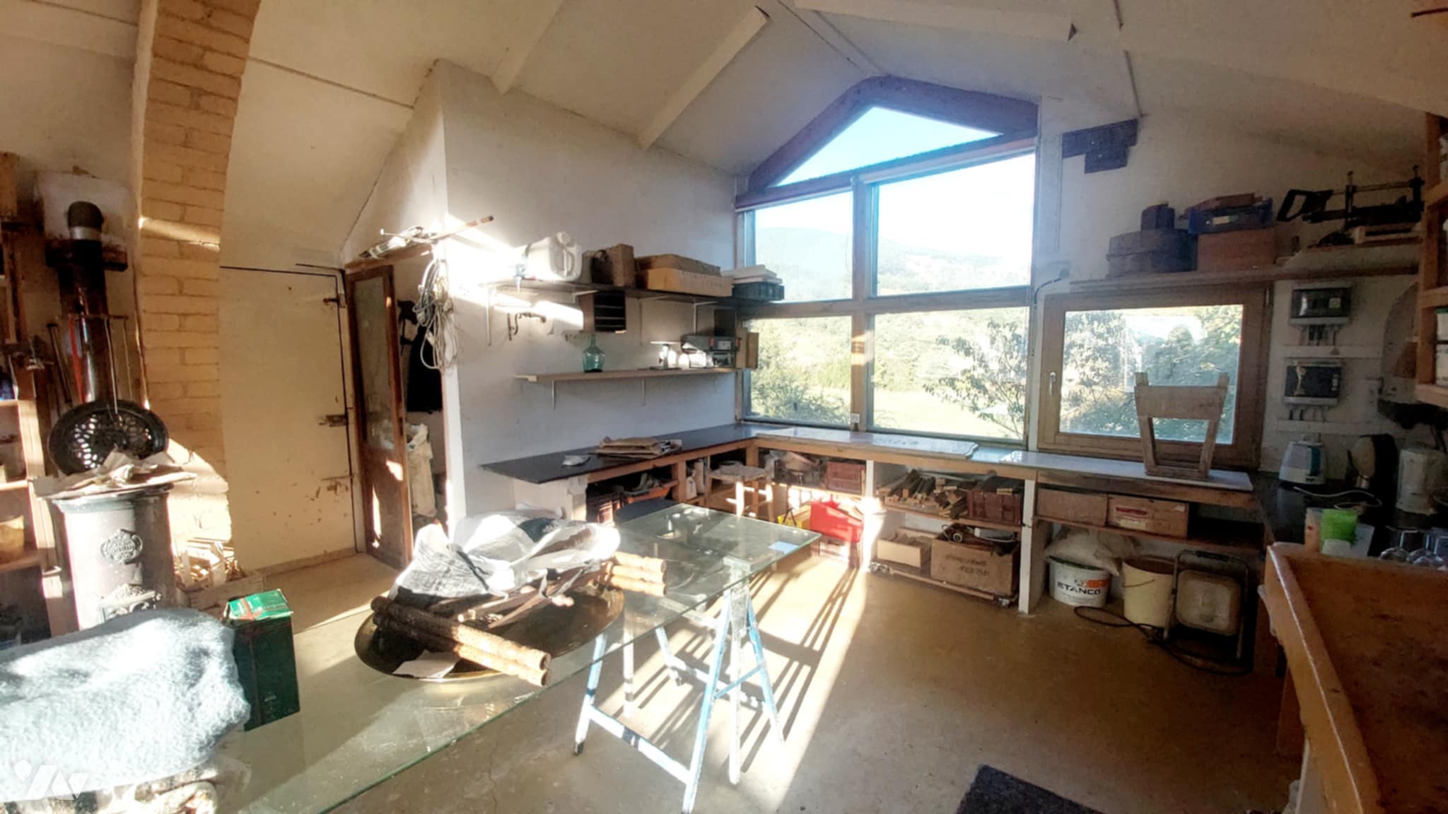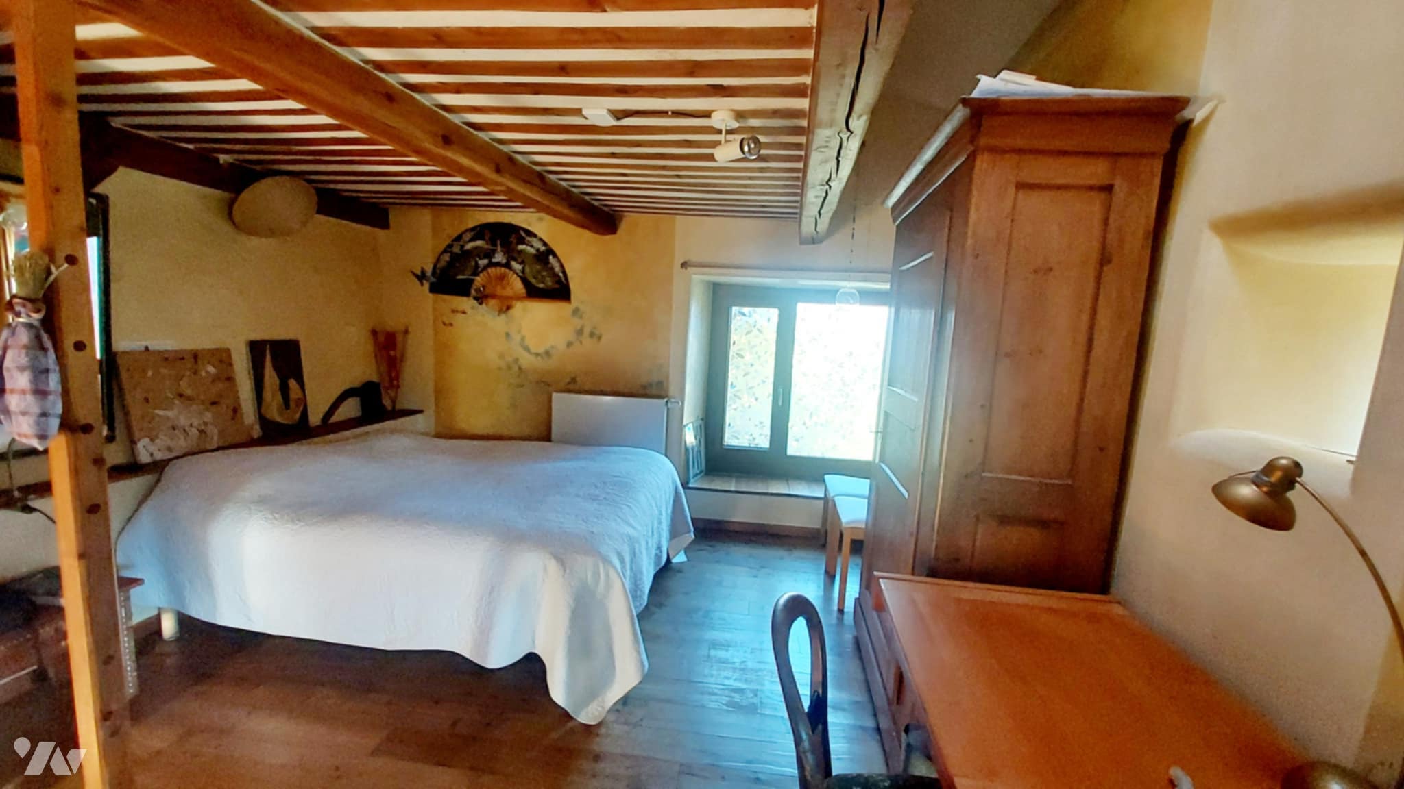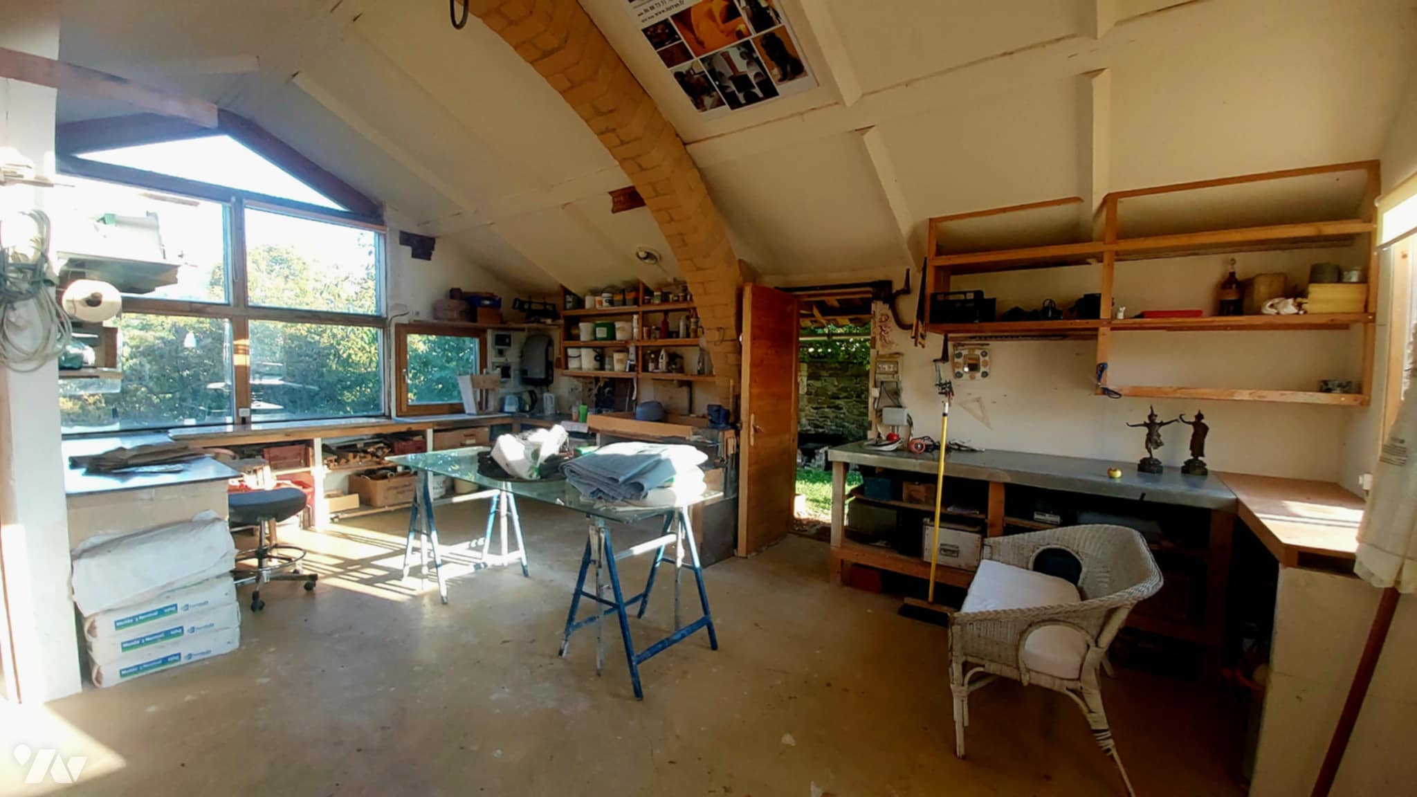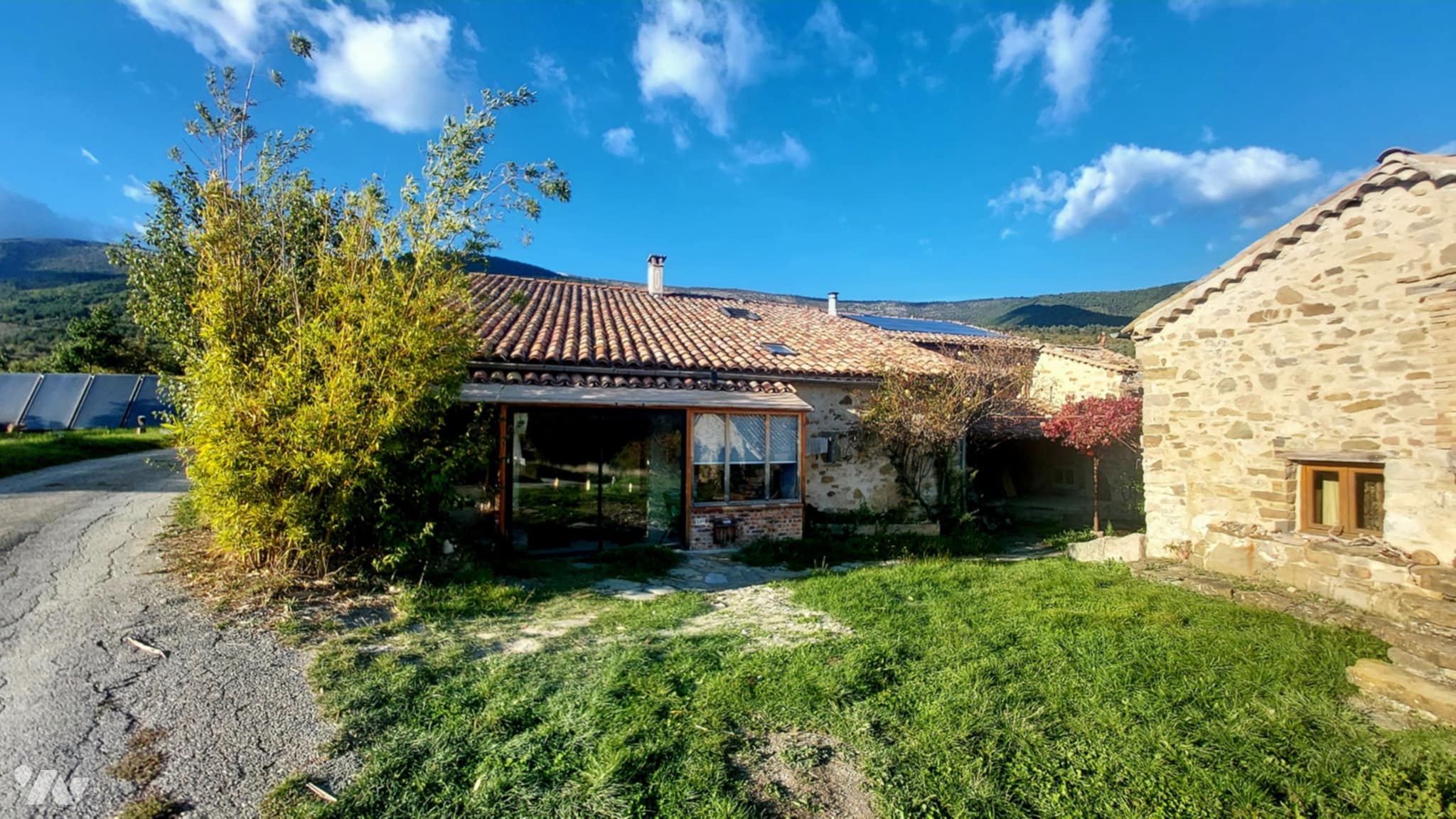 Maison mitoyenne de caractère T7 dans environnement naturel paisible avec dépendances ateliers composée comme suit : au rez de chaussée une véranda de 4 m2 et une entrée de 15.6 m2 ouvrent sur un chaleureux séjour cuisine de 38 m2, une salle de bain de 8.9 m2, une chaufferie de 17.30 m2, un atelier bois de 31 m2, côté sud une chambre de 16.m2 et un dégagement de 3.50 m2 avec wc séparés de 2.55 m2 puis à l'étage se trouvent un magnifique atelier de création de 52 m2 , une salle actuellement dédiée à l'exposition d'œuvres très lumineuse de 30.80 m2 . De cette pièce splendide nous pouvons accéder à une chambre de 11 m2, une autre de 19.43 m2 avec possibilité de créer une salle de bain car elle est doté d'une arrivée d'eau, à un bureau de 5.20 m2, un espace de stockage de 14.20 m2. A ce niveau se trouve aussi et une pièce avec four de 24.60 m2 ouvrant sur le jardin arrière. Là, un atelier indépendant de 35 m2 environ avec de grandes ouvertures vitrées côtés Est et Ouest vous permettra de réaliser l'activité de votre choix tout en profitant du soleil toute la journée. La maison est équipée de panneaux solaires et d'une chaudière à bois. Faible en consommation énergétique. L'ensemble de cette propriété unique est située dans un petit hameau au calme au cœur du parc des Baronnies Provençales.